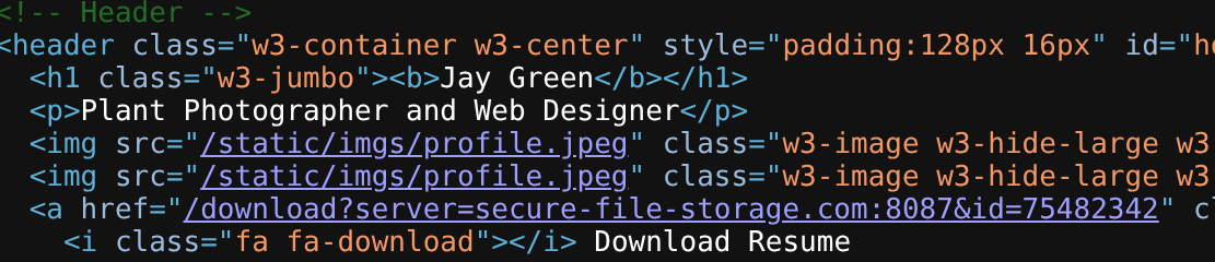 * The Download Resume button was calling a `/download` API endpoint to fetch the file. I could use this to carry out an SSRF attack on the target.