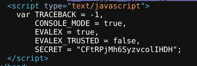 * This revealed that the website was running Python's Flask framework in the backend. I looked through the errors and found the following